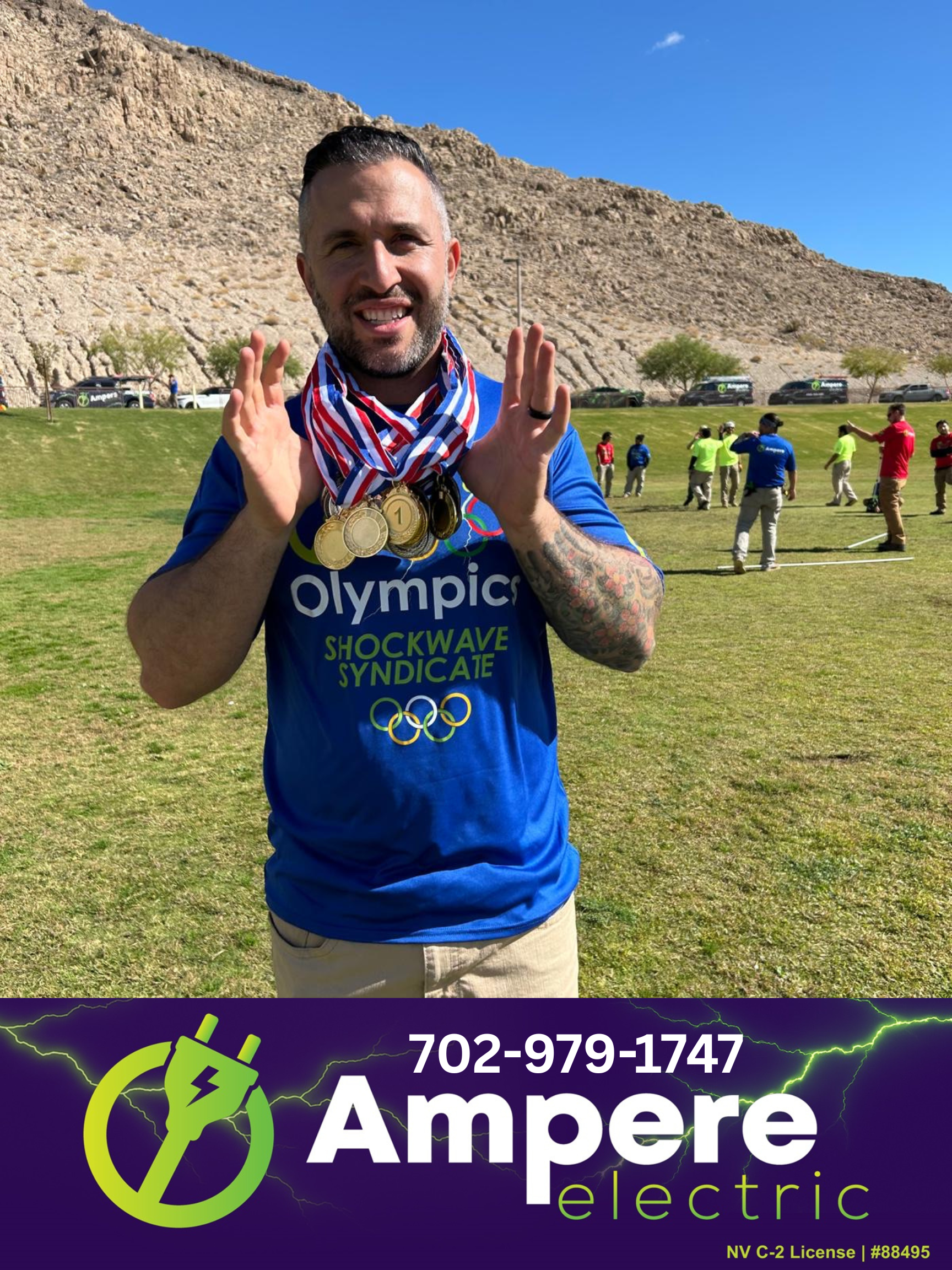 Ampere Electric, licensed under Nevada C-2 License #88495, continues to power the Las Vegas valley with 24/7 emergency services, EV charger installations, panel upgrades, generator setups, and more. Serving Las Vegas, Henderson, and surrounding areas, the company is committed to safety, quality, and community values embodied in events like the Employee Olympics.